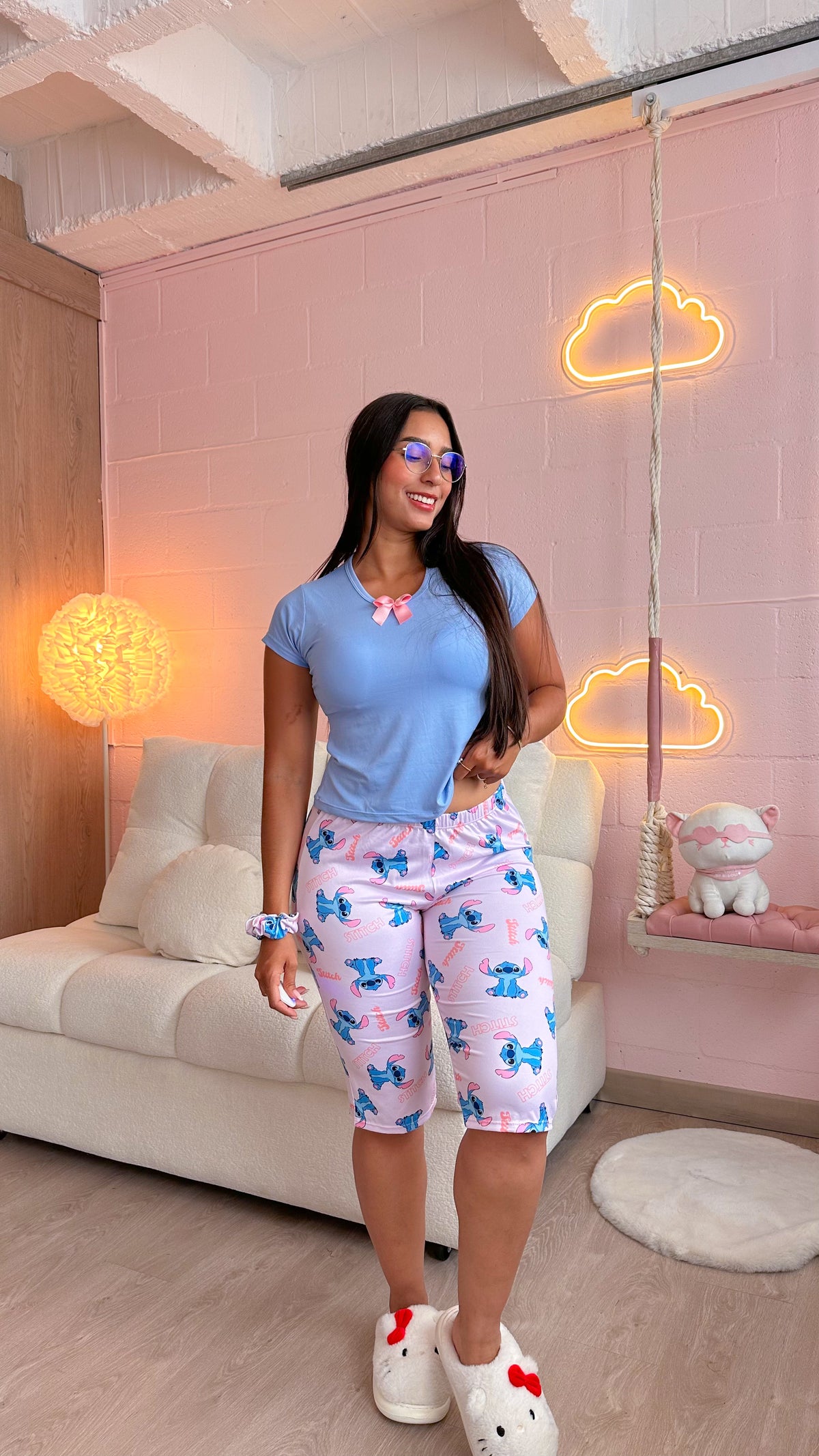Nuestra pijama de Capri con estampado sublimado y camisa combina estilo y comodidad. El diseño sublimado garantiza un estampado duradero y vibrante, mientras que la camisa ofrece un ajuste cómodo y transpirable. Úsala para dormir, descansar o simplemente relajarte en casa. ¡Haz que cada noche sea especial! 👸❣️